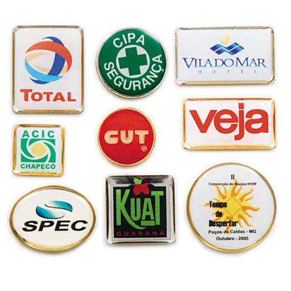 Crachás feitos em aço, latão, abs, resinado.